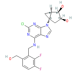 | SMILES | OCc1ccc(F)c(F)c1CNc1nc(Cl)nc2c1ncn2[C@@]12C[C@H](O)[C@H](O)[C@@H]1C2 |