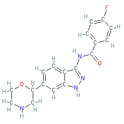 | SMILES | O=C(Nc1n[nH]c2cc(C3CNCCO3)ccc12)c1ccc(F)cc1 |