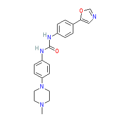 | SMILES | CN1CCN(c2ccc(NC(=O)Nc3ccc(-c4cnco4)cc3)cc2)CC1 |