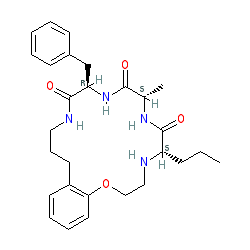 | SMILES | CCC[C@@H]1NCCOc2ccccc2CCCNC(=O)[C@@H](Cc2ccccc2)NC(=O)[C@H](C)NC1=O |