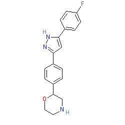 | SMILES | Fc1ccc(-c2cc(-c3ccc(C4CNCCO4)cc3)n[nH]2)cc1 |