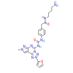 | SMILES | Cn1cc2c(nc(NC(=O)Nc3ccc(CC(=O)NCCCCN)cc3)n3nc(-c4ccco4)nc23)n1 |