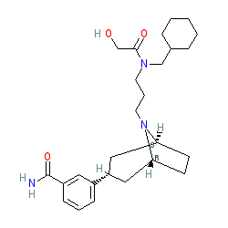 | SMILES | NC(=O)c1cccc([C@@H]2C[C@@H]3CC[C@H](C2)N3CCCN(CC2CCCCC2)C(=O)CO)c1 |