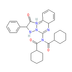 | SMILES | O=C(c1ccccc1)N(C(=O)c1ccccc1)c1nc2ccccc2n2c(=O)c(-c3ccccc3)nn12 |