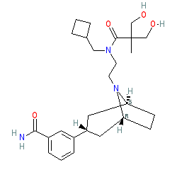 | SMILES | CC(CO)(CO)C(=O)N(CCN1[C@H]2CC[C@@H]1C[C@H](c1cccc(C(N)=O)c1)C2)CC1CCC1 |