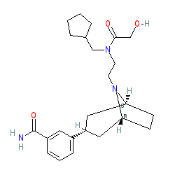 | SMILES | NC(=O)c1cccc([C@@H]2C[C@@H]3CC[C@H](C2)N3CCN(CC2CCCC2)C(=O)CO)c1 |