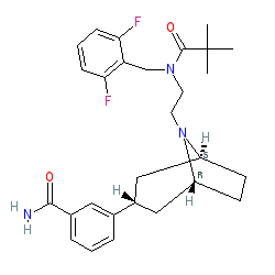 | SMILES | CC(C)(C)C(=O)N(CCN1[C@H]2CC[C@@H]1C[C@H](c1cccc(C(N)=O)c1)C2)Cc1c(F)cccc1F |
