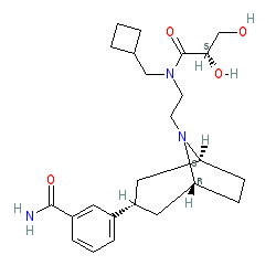 | SMILES | NC(=O)c1cccc([C@@H]2C[C@@H]3CC[C@H](C2)N3CCN(CC2CCC2)C(=O)[C@@H](O)CO)c1 |