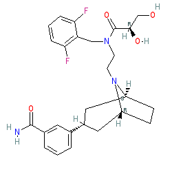 | SMILES | NC(=O)c1cccc([C@@H]2C[C@@H]3CC[C@H](C2)N3CCN(Cc2c(F)cccc2F)C(=O)[C@H](O)CO)c1 |