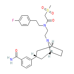 | SMILES | CS(=O)(=O)CC(=O)N(CCc1ccc(F)cc1)CCN1[C@H]2CC[C@@H]1C[C@H](c1cccc(C(N)=O)c1)C2 |