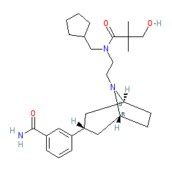 | SMILES | CC(C)(CO)C(=O)N(CCN1[C@H]2CC[C@@H]1C[C@H](c1cccc(C(N)=O)c1)C2)CC1CCCC1 |