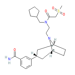 | SMILES | CS(=O)(=O)CC(=O)N(CCN1[C@H]2CC[C@@H]1C[C@H](c1cccc(C(N)=O)c1)C2)CC1CCCC1 |