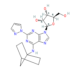 | SMILES | OC[C@H]1O[C@@H](n2cnc3c(NC45CCC(CC4)C5)nc(-n4cccn4)nc32)[C@H](O)[C@@H]1O |