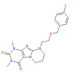 | SMILES | Cn1c(=O)c2c(nc3n2CCCN3CCOCc2ccc(F)cc2)n(C)c1=O |