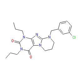 | SMILES | CCCn1c(=O)c2c(nc3n2CCCN3Cc2cccc(Cl)c2)n(CCC)c1=O |