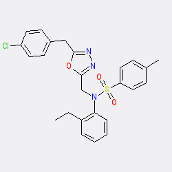 | SMILES | CCc1ccccc1N(Cc1nnc(Cc2ccc(Cl)cc2)o1)S(=O)(=O)c1ccc(C)cc1 |
