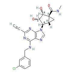 | SMILES | C#Cc1nc(NCc2cccc(Cl)c2)c2ncn([C@H]3[C@H](O)[C@H](O)[C@]4(C(=O)NC)C[C@H]34)c2n1 |