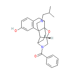 | SMILES | CC(C)CN1CCC23c4cc(O)ccc4CC1C21CCC2C3[C@@H](CN2C(=O)c2ccccc2)O1 |