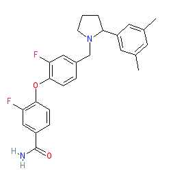 | SMILES | Cc1cc(C)cc(C2CCCN2Cc2ccc(Oc3ccc(C(N)=O)cc3F)c(F)c2)c1 |