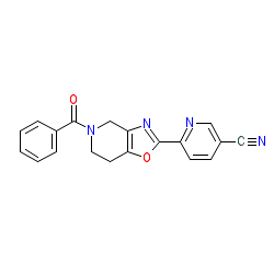 | SMILES | N#Cc1ccc(-c2nc3c(o2)CCN(C(=O)c2ccccc2)C3)nc1 |