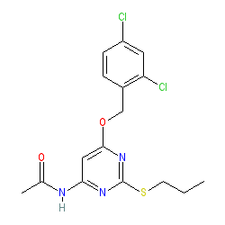 | SMILES | CCCSc1nc(NC(C)=O)cc(OCc2ccc(Cl)cc2Cl)n1 |