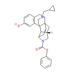 | SMILES | O=C(Oc1ccccc1)N1C[C@H]2CC34CCC1C2C31CCN(CC2CC2)C4Cc2ccc(O)cc21 |