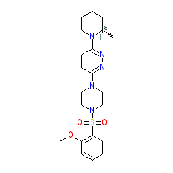 | SMILES | COc1ccccc1S(=O)(=O)N1CCN(c2ccc(N3CCCC[C@@H]3C)nn2)CC1 |