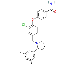 | SMILES | Cc1cc(C)cc(C2CCCN2Cc2ccc(Oc3ccc(C(N)=O)cc3)c(Cl)c2)c1 |