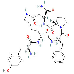 | SMILES | NC(=O)[C@@H]1CC(=O)NCCCC[C@@H](NC(=O)[C@@H](N)Cc2ccc(O)cc2)C(=O)N[C@@H](Cc2ccccc2)C(=O)N2CCC[C@H]2C(=O)N1 |