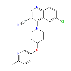 | SMILES | Cc1ccc(OC2CCN(c3c(C#N)cnc4ccc(Cl)cc34)CC2)cn1 |