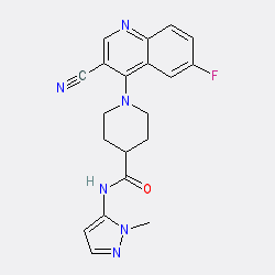 | SMILES | Cn1nccc1NC(=O)C1CCN(c2c(C#N)cnc3ccc(F)cc23)CC1 |