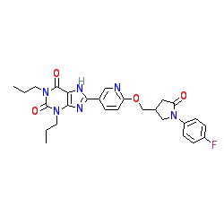 | SMILES | CCCn1c(=O)c2[nH]c(-c3ccc(OCC4CC(=O)N(c5ccc(F)cc5)C4)nc3)nc2n(CCC)c1=O |