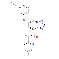 | SMILES | N#Cc1cncc(Oc2cc(C(=O)Nc3ccc(F)cn3)c3ncnn3c2)c1 |