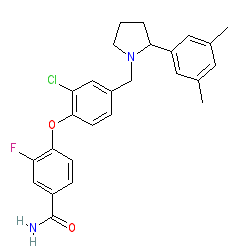 | SMILES | Cc1cc(C)cc(C2CCCN2Cc2ccc(Oc3ccc(C(N)=O)cc3F)c(Cl)c2)c1 |
