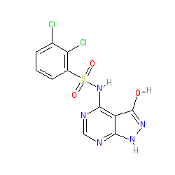 | SMILES | O=S(=O)(Nc1ncnc2[nH]nc(O)c12)c1cccc(Cl)c1Cl |