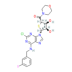 | SMILES | O=C([C@H]1S[C@@H](n2cnc3c(NCc4cccc(I)c4)nc(Cl)nc32)[C@H](O)[C@@H]1O)N1CCOCC1 |