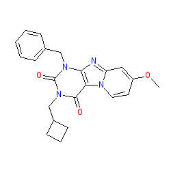 | SMILES | COc1ccn2c(c1)nc1c2c(=O)n(CC2CCC2)c(=O)n1Cc1ccccc1 |