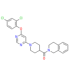 | SMILES | O=C(C1CCN(c2cc(Oc3ccc(Cl)cc3Cl)ncn2)CC1)N1CCc2ccccc2C1 |