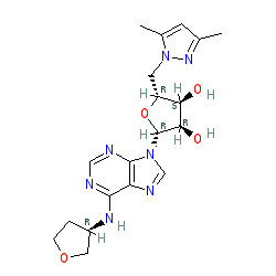| SMILES | Cc1cc(C)n(C[C@H]2O[C@@H](n3cnc4c(N[C@@H]5CCOC5)ncnc43)[C@H](O)[C@@H]2O)n1 |