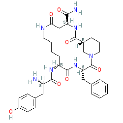 | SMILES | NC(=O)[C@@H]1CC(=O)NCCCC[C@@H](NC(=O)[C@@H](N)Cc2ccc(O)cc2)C(=O)N[C@@H](Cc2ccccc2)C(=O)N2CCC[C@H](C2)C(=O)N1 |