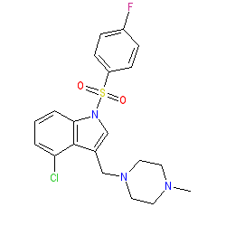 | SMILES | CN1CCN(Cc2cn(S(=O)(=O)c3ccc(F)cc3)c3cccc(Cl)c23)CC1 |