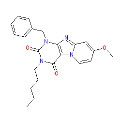 | SMILES | CCCCCn1c(=O)c2c(nc3cc(OC)ccn32)n(Cc2ccccc2)c1=O |