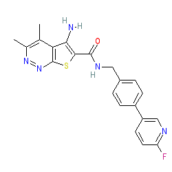 | SMILES | Cc1nnc2sc(C(=O)NCc3ccc(-c4ccc(F)nc4)cc3)c(N)c2c1C |