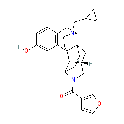 | SMILES | O=C(c1ccoc1)N1C[C@H]2CC34CCC1C2C31CCN(CC2CC2)C4Cc2ccc(O)cc21 |