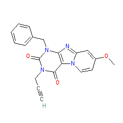 | SMILES | C#CCn1c(=O)c2c(nc3cc(OC)ccn32)n(Cc2ccccc2)c1=O |