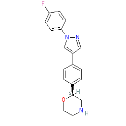 | SMILES | Fc1ccc(-n2cc(-c3ccc([C@H]4CNCCO4)cc3)cn2)cc1 |