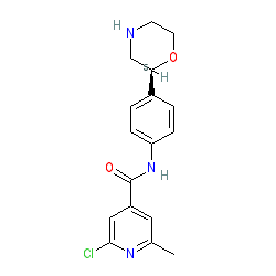 | SMILES | Cc1cc(C(=O)Nc2ccc([C@H]3CNCCO3)cc2)cc(Cl)n1 |