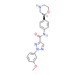 | SMILES | COc1cccc(-n2ncc(C(=O)Nc3ccc([C@H]4CNCCO4)cc3)n2)c1 |