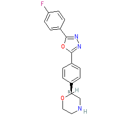 | SMILES | Fc1ccc(-c2nnc(-c3ccc([C@H]4CNCCO4)cc3)o2)cc1 |