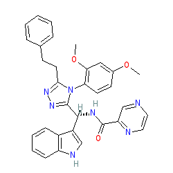 | SMILES | COc1ccc(-n2c(CCc3ccccc3)nnc2[C@H](NC(=O)c2cnccn2)c2c[nH]c3ccccc23)c(OC)c1 |